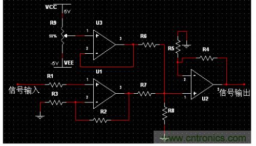 R1,R2分別由一個模擬開關CD4051來連接不同的電阻,不同的R1,R2通過公式:這樣就可以實現程控放大功能了。可調電阻R9用來設置信號調理電路加入的直流分量的大小。放大后的信號和直流分量最后由U3模擬加法器疊加后輸出。