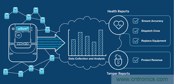 mSure 是一種非侵入診斷技術(shù),可以監(jiān)控傳感器的精度和故障狀況。電力公司電表采用ADI公司的全新電能計(jì)量IC,可以提供電表運(yùn)行數(shù)據(jù)。