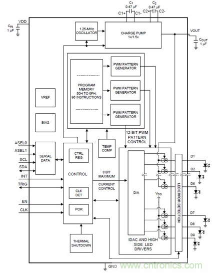 LP55231:九通道LED驅動器,旨在為移動設備提供照明效果設備。