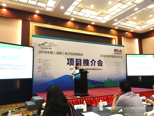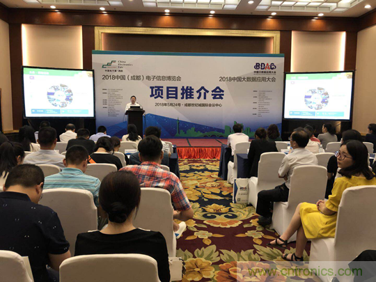 2018年5月24日下午, 2018中國(成都)電子信息博覽會暨2018中國大數(shù)據(jù)應用大會在成都世紀城國際會議中心召開項目推介會。活動由中電會展與信息傳播有限公司總經(jīng)理宋偉主持,四川省經(jīng)濟和信息化委員會電子處蘇平處長,成都市經(jīng)濟和信息化委員會通用電子處副處長鄧敏出席推介會并致辭,中國電子器材總公司總經(jīng)理陳雯海向來賓介紹了2018中國(成都)電子信息博會項目整體情況和2018中國大數(shù)據(jù)應用大會項目的相關(guān)進展情況,四川省大數(shù)據(jù)產(chǎn)業(yè)聯(lián)合會常務副秘書長朱小軍,代表合作伙伴在推介會上進行了發(fā)言,四川省其他30家相關(guān)學協(xié)會等也參加了本次活動。另外,現(xiàn)場還有超過50家媒體及100家成都及四川地區(qū)電子信息產(chǎn)業(yè)相關(guān)企業(yè)及組織出席項目推介會。
