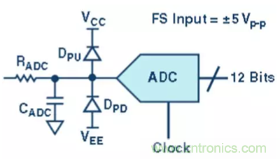 電容提供了一個簡單的低通抗混疊濾波器 (AAF),用以衰減目標頻帶之外的信號和噪聲。AAF 的設計在很大程度上取決于系統的設計和應用。最后,上拉和下拉二極管可增添輸入保護功能,可防止有可能被施加到轉換器輸入端的極端過載信號導致的任何故障狀況。