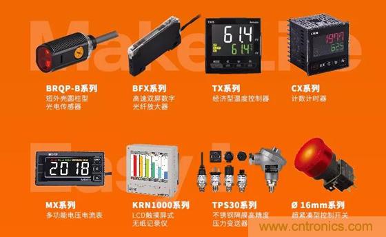 在此體系之下,企業(yè)近日再度推出了大量傳感器、控制器等新產(chǎn)品,其中包括短外殼圓柱型光電傳感器BRQP-B系列,高速雙屏數(shù)字光纖放大器BFX系列,溫度控制器TX系列,計(jì)數(shù)計(jì)時(shí)器CX系列,多功能電壓電流表MX系列,LCD觸摸屏式無紙記錄儀KRN1000系列,不銹鋼隔膜高精度壓力變送器TPS30系列,Ø 16mm控制開關(guān),以及節(jié)省布線時(shí)間50%以上的傳感器連接器CNE系列......
