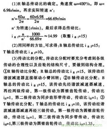 諧波齒輪減速器是一種新型的機械傳動變速機構。 與普通齒輪傳動相比,具有體積小,重量輕,結構簡單。它與傳動比相當的普通減速器比較,其零件減少50%。 體積和重量均減少l,3左右或更多。傳動比范圍大(單級傳動比為40~350,多級傳動比可達1600~100000),傳動效率高(單級傳動效率饑≥85%),傳動精度高。承載能力強等特點。 根據所選擇的電機,選擇型號為SGMAH—OIA,額定功率為loo W,額定轉矩為0.318 N·m,額定轉速為 3000 drain的交流伺服電動機。同時選擇XBl諧波減速機,機型為25,減速比為40,輸出力矩為1.0N·m,輸入轉速為3000 r/min。為了訂貨和維修方便,三軸均采用同一種減速器。