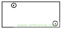 Mark點,是放在PCB上的兩個基準點,憑借該基準點,貼片機就有了位置坐標參考點。通常mark點是兩個不蓋綠油的銅箔,其中一個為正方形,一個為圓形,分布在PCB的對角,大小為1mm,同時在其外增加一個外徑4mm,寬度為0.3mm的銅環。注意,MARK點在每個板子上面都要有,且兩個基準點的反向坐標不能重合。如下圖所示: