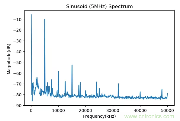 DS345產(chǎn)生的5MHz的正弦信號(hào)的頻譜