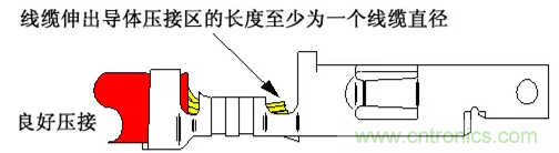 如果剝線長度過短,或者線纜沒有完全插入導體指定的壓接區,端接有機會不能達到規定的拉拔力, 因為線纜與端子之間的金屬接觸減少了。