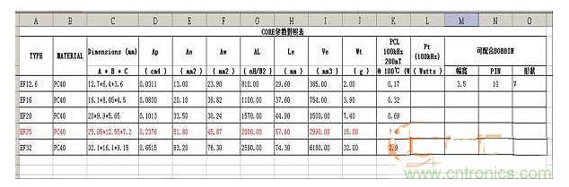 表二EF25磁芯參數(shù)