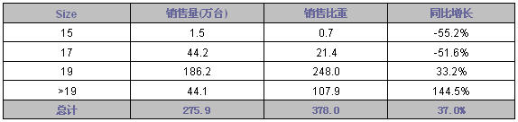 - 大于19LCD銷量同比增長(zhǎng)為144.5%