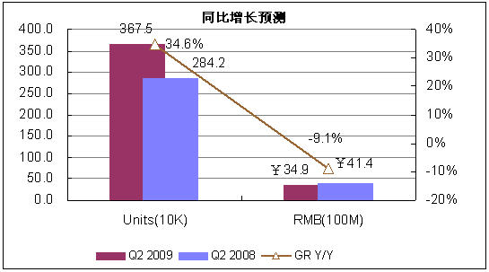 2009年第二季度,由于市場(chǎng)淡季來(lái)臨,需求動(dòng)力不足。賽迪顧問(wèn)預(yù)測(cè),第二季度市場(chǎng)銷量為367.5萬(wàn)臺(tái)。