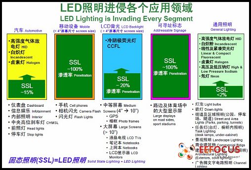 Laurent Jenck 說LED今日的發展態勢像極了昔日的IC產業,前期主要集中在軍隊、科研等成本不敏感領域。然后隨著成本和效率的改善,慢慢走近千家萬戶。隨著應用的增 多,LED照明的價格/成本將逐步趨向消費應用。預計未來5年,LED照明將走進普通家庭。“隨著量產而來的合理價格,LED未來的發展市場還是可見一斑 。”