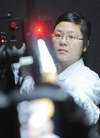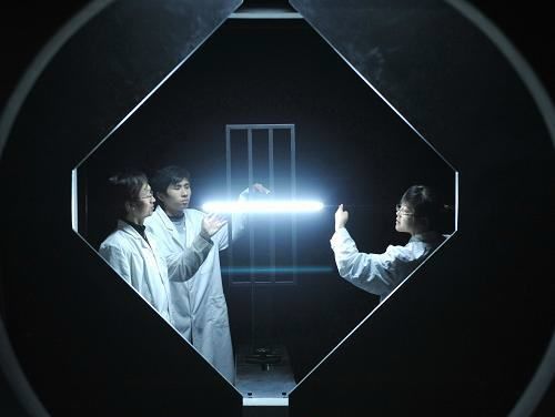 圖:天津工業(yè)大學(xué)半導(dǎo)體照明工程研發(fā)中心的科技人員在測試LED燈光通量大小