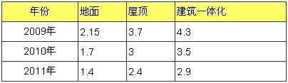 與此同時的各地政府也紛紛出臺政策刺激光伏電站的發展,杭州市提出“陽光屋頂”計劃,廣州,南昌,無錫,保定,上海紛紛提出了本地的光伏電站發展規劃,中國光伏最發達的江蘇省率先出臺了《太陽能光電建筑應用財政補助資金管理暫行辦法》,其中規定,通過3年努力,力爭在全省建成光伏并網發電裝機容量400兆瓦,2009-2011年分年度目標電價為:
