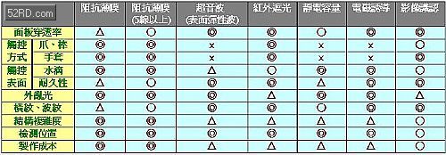表1是各種觸控面板結構特性比較一覽。接著將依序介紹觸控面板的結構性特徵與動作上的優(yōu)缺點。