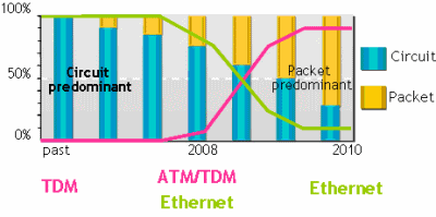 圖2城域網(wǎng)主導(dǎo)業(yè)務(wù)類(lèi)型由TDM向Packet的轉(zhuǎn)換