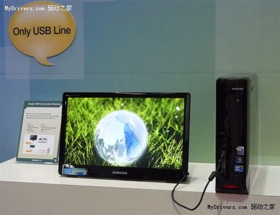 據報道,三星近日在國際信息顯示大會SID 2010上展示了一臺18.5寸低功耗LED背光液晶,該顯示器可直接通過USB接口與主機相連。