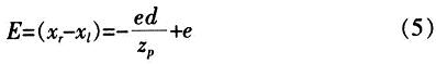 左視點(diǎn)Leye和右視點(diǎn)Reye均位于X軸上,兩視點(diǎn)間的距離為e,兩視點(diǎn)連線中心為坐標(biāo)原點(diǎn),則左視點(diǎn)的坐標(biāo)為(-e/2,0,0),右視點(diǎn)的坐標(biāo)為(+e/2,0,0)。投影平面平行于XY平面,到左右視點(diǎn)的距離均為d。三維空間中一點(diǎn)P(xp,yp,zp)在左視點(diǎn)投影中的坐標(biāo)為(xl,yl,zl),在右視點(diǎn)投影中的坐標(biāo)為(xr,yr,zr),則zl=zr=d。點(diǎn)P(xp,yp,zp)和Reye投影線的參數(shù)方程為: