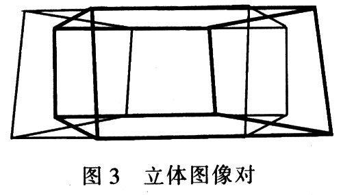 使用簡(jiǎn)單的濾光鏡就可觀察有立體感的圖像。其原理是:由于濾光片(實(shí)驗(yàn)中使用紅、綠濾光片)吸收其他光線,只讓相同顏色的光線通過(guò),因此左、右眼各透過(guò)不同顏色的光。當(dāng)使用濾光鏡觀察計(jì)算機(jī)屏幕上的立體圖像對(duì)時(shí),就會(huì)看到具有深度感受的圖像。在實(shí)驗(yàn)中發(fā)現(xiàn),刷新頻率對(duì)圖像立體效果的形成具有重要作用。刷新頻率過(guò)低,由于人眼所維持的圖像已消失,不能得到三維立體感受;刷新頻率過(guò)高就會(huì)出現(xiàn)一只眼睛可看到兩幅圖像的現(xiàn)象。將顯示的刷新頻率設(shè)置合適,在程序中設(shè)置圖像刷新頻率設(shè)置為50Hz,利用紅綠濾光鏡觀察模型的立體成像,得到較明顯的立體視覺(jué)效果。