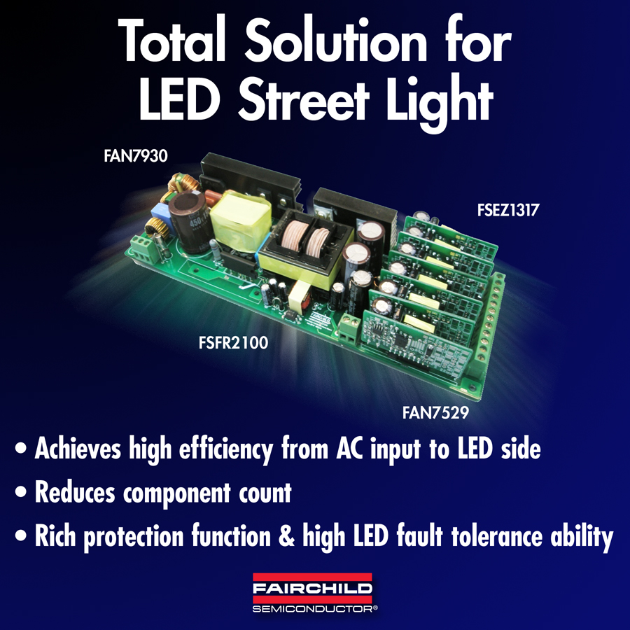 • 飛兆半導體公司開發(fā)出一款完整的LED路燈照明解決方案