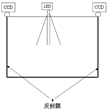 CCD光掃描原理是:在顯示區(qū)域的一邊設(shè)置兩個(gè)固定距離的CCD線陣探測器和紅外發(fā)射器,對準(zhǔn)顯示區(qū)域。在顯示區(qū)域的另外三邊設(shè)置可以反射光線的反射膜,在沒有物體阻擋時(shí),線陣CCD檢測到的是一條完整的光帶。當(dāng)有物體在顯示區(qū)域中擋住光線傳播路徑時(shí),在線陣CCD檢測到的光帶中會出現(xiàn)無反光區(qū)域,分布在兩個(gè)角的CCD分別檢測到的遮擋區(qū)域反應(yīng)在線陣CCD的對應(yīng)區(qū)域,根據(jù)對應(yīng)的區(qū)域計(jì)算出物體在顯示區(qū)域的位置,是一種交叉點(diǎn)測試定位方式。
