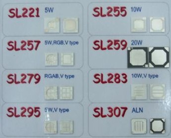 圖3:不同種類陶瓷基板,以瓦數、內部顏色組件作區分。