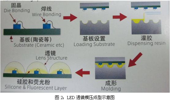 - 降低成本:該工藝無(wú)澆道,無(wú)廢料,樹脂利用率達(dá)100%,可有效降低成本。另外可使用與熒光粉混合后的液體樹脂進(jìn)行封裝