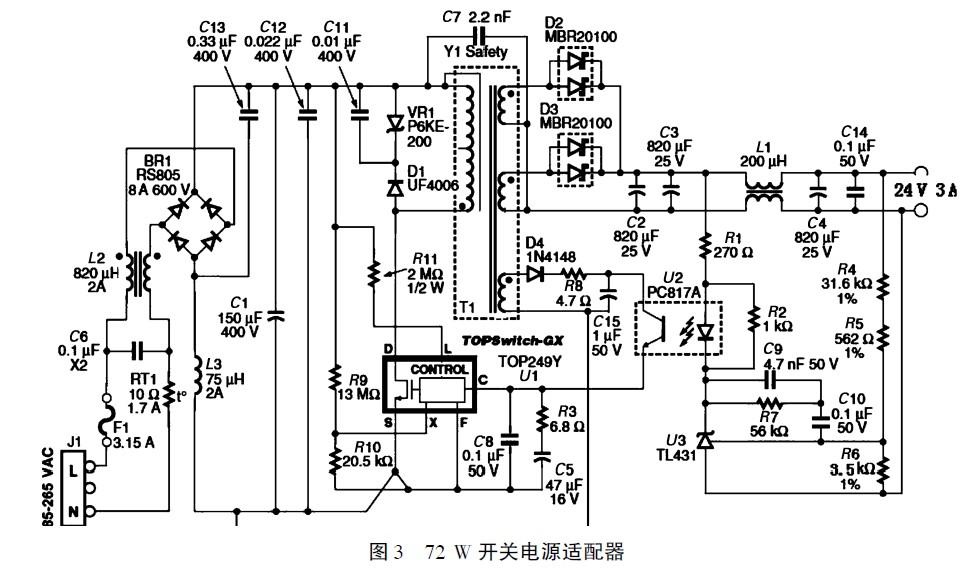 2 基于TOP249Y的72W開關(guān)電源適配器設(shè)計(jì)