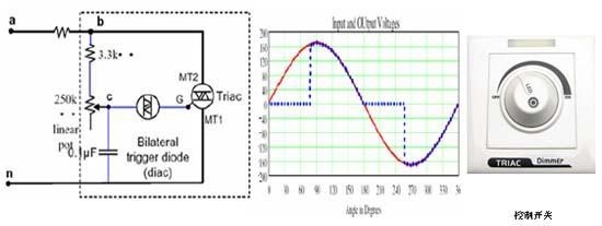 改變可變電阻的分壓比就可以改變其導(dǎo)通角,從而實(shí)現(xiàn)改變其有效值的目的。通常這個(gè)電位器帶一個(gè)開關(guān),接在n的輸入端,用于開關(guān)燈。除了可控硅以外,還有晶體管后沿調(diào)光技術(shù)等等,因?yàn)樗鼈兊幕締栴}是相同的,就不在此介紹了。