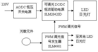 為了減小在強(qiáng)日光下不必要的照明,可以采用光敏自動(dòng)調(diào)光LED日光燈(或任何其他LED燈具)。它的方框圖如圖11所示。