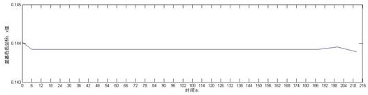 對RGB三基色的色坐標(biāo)數(shù)據(jù)隨時間變化情況進行分析,分別得到圖2、圖3和圖4。