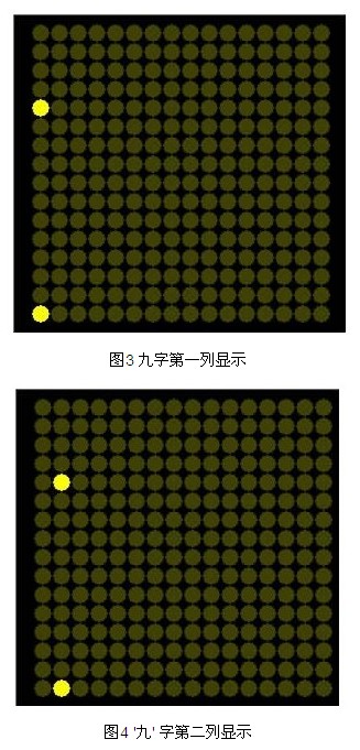 程序執(zhí)行16 次后用時(shí)0.016S 左右, 由于人眼的視覺(jué)停留效應(yīng),我們是分辨不出閃爍的,循環(huán)100 次后,'' 九'' 字就可以完整顯示出來(lái),持續(xù)時(shí)間1.6S 左右。