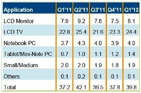 友達(dá)、新奇美、京東方、華映和瀚宇等廠商計(jì)劃于 2012年將更多資源投入到生產(chǎn)平板電腦面板上。盡管五代線和更低世代線主要以生產(chǎn)小筆電和平板電腦面板為主,但到 2012年第一季,預(yù)期有超過一半的小筆電和平板電腦面板將放在六代線和八代線上生產(chǎn)。