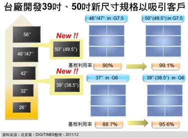 - 開發新尺寸面板成2012年面板商提升平均單價搶占市場的重要方向