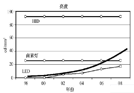 這種LED 新光源使得汽車燈具的風格設(shè)計和造型布置具有空前的靈活性,且LED 光輸出功率密度在技術(shù)上已能夠與HID 燈具匹敵。因此一旦能降低成本并在技術(shù)上實現(xiàn)量產(chǎn),它極有希望把現(xiàn)存的其他照明技術(shù)淘汰出局而獨霸車燈市場。