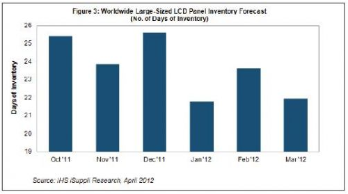 據(jù)IHS iSuppli公司的液晶顯示器(LCD)價格追蹤報告,由于需求增長超過產(chǎn)量,3月份大尺寸LCD面板總體庫存降至兩年多以來的第二低水平。這對于顯示器產(chǎn)業(yè)來說很少見,是令人高興的轉變。