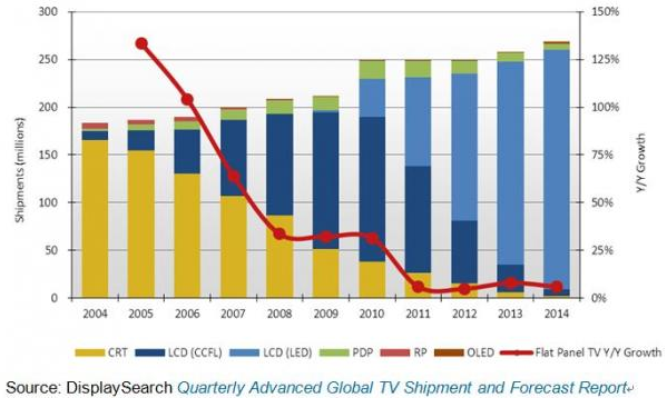 圖一、2004-2014年全球電視按技術(shù)別出貨預(yù)測
