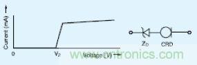 它在某一個電壓范圍內有一段恒流區間,在這個區間,流經的電流幾乎不變,VL為到達IL的電壓值,IL大約為0.8Ip,Vb為擊穿電壓值。但是實際的恒流二極管并不是那么理想。圖3是美國Supertex的CL1恒流二極管的特性。它的電流仍然會隨電壓而有所增加。