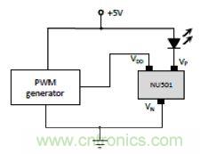 圖19 用PWM信號來對恒流二極管供電的LED調光