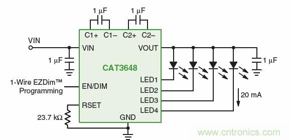 針對LCD背光、LED閃光/電筒和指示器,安森美半導體提供總輸出電流10至192 mA的多種電荷泵/白光和RGB LED驅動器產品,包括NCP1840、CAT3606、CAT3616、CAT3626、CAT3636、AT3637、CAT3649、CAT3604A、CAT3604V、CAT3614、CAT3644、NCP5623B/C、CAT3643、CAT3647、CAT3612、CAT3224(4閃光燈,400 mA電筒)、NCP5612、CAT3661、NCP5603(200 mA DC,350 mA脈沖)、CAT3200、CAT3200H。