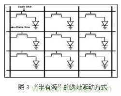 而第三種“半有源”驅(qū)動(dòng)雖然可以較好地避免像素之間的串?dāng)_現(xiàn)象,但是由于其像素電路中沒有存儲(chǔ)電容,并且每一列的驅(qū)動(dòng)電流信號需要單獨(dú)調(diào)制,并不能完全達(dá)到上面列出的有源選址驅(qū)動(dòng)方式的全部優(yōu)勢。