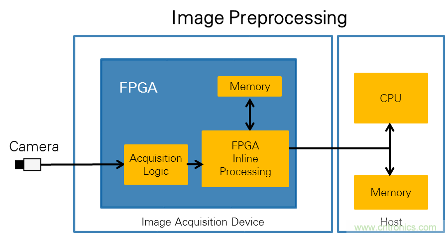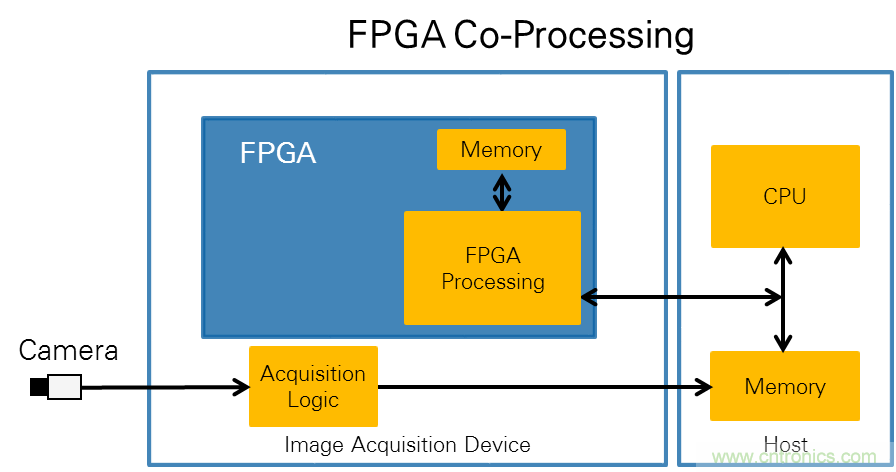 2.在嵌入式FPGA處理架構中,您可以將相機接口直接連接到FPGA的引腳,以便像素可直接從相機發送到FPGA。
