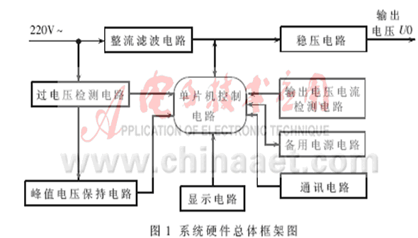 智能化電源的核心由顯示板、CPU板、通信板、備用電源板、過電壓檢測板、鍵盤、通信轉接板組成。裝置的關鍵是實現電壓的峰值檢測,尤其是過電壓的檢測。本文提出了一種基于單片機的過電壓檢測和峰值電壓檢測方法,實驗證明它滿足了對檢測的快速性和精確性的要求。