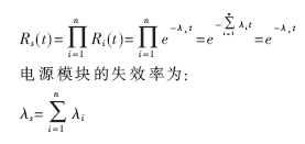 組合電源模塊由多個電子元器件組成,設每個元器件的可靠度分別為Ri(t)(i=1,2…n),失效率為λi(i=1,2…n),其可靠性數學模型表現為各電子元器件串聯結構中任何一個電子元器件故障,都會導致電源模塊故障。