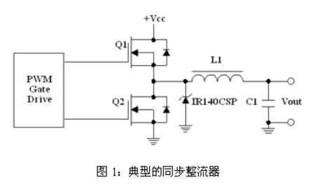 圖1示出了由一個高側(cè)MOSFET(Q1)和低側(cè)MOSFET(Q2)組成的典型同步整流器,為了實現(xiàn)最佳的同步整流器設計,這兩個MOSFET需要具備不同的特性。一般來說,您可以通過搜尋一個具有最低Qswitch×RDS(ON)性能因數(shù)的器件來選擇最佳的Q1 MOSFET。Qswitch被定義為柵-源極電荷的后柵極臨限部分與柵-漏極電荷之和(Qgs2 + Qgd)。相比之下,最佳的Q2 MOSFET必須擁有非常低的RDS(ON)以及良好的Cdv/dt抗干擾。由于Q2的漏極與轉(zhuǎn)換器的開關(guān)節(jié)點相連,因此,它承受著地電位與Vin之間的瞬變電壓。隨著Q1的導通和關(guān)斷,漏極電壓會以dV/dt的速率進行變化,該變化將被容性耦合至Q2的柵極,并能夠引起一個足以使MOSFET導通的電壓尖峰,從而產(chǎn)生擊穿電流。因此,必須最大限度地減小Qgd/ Qgs1(柵-漏極電荷/臨限前柵-源極電荷)之比率以降低Cdv/dt導通電位。