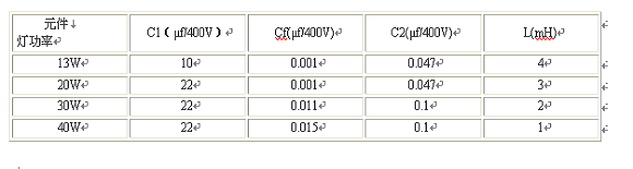 用MR9830組裝的電子鎮流器能可*地驅動40W以下功率的各種日光燈和節能燈。而且體積小,效率高,故障率極低,組裝工藝也非常簡單。圖2中的C1、C2、及Cf和電感L的參數可根據需推動日光燈管、節能燈管的功率不同而不同,具體的參數設置可參見表1。