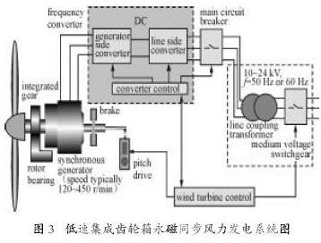 c.集成低速齒輪箱的永磁機風力發電系統