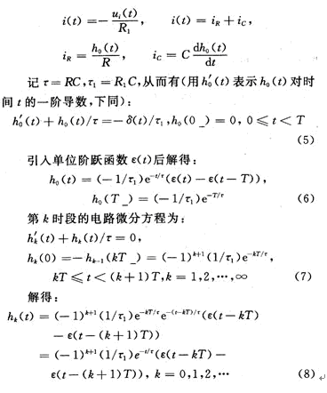 由于電子開關(guān)周期性切換,RC電路對外電路的影響表現(xiàn)為:下一時(shí)段的輸出電壓初值是上一時(shí)段末時(shí)刻輸出電壓值乘(-1),即: