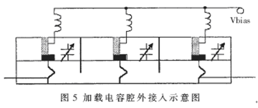 傳統(tǒng)的小信號(hào)電調(diào)螺旋諧振腔、濾波器中,加載電容采用腔內(nèi)安裝接入方式。這種方式易實(shí)現(xiàn),但在高頻情況下,腔內(nèi)強(qiáng)行添加異物,使本來就復(fù)雜的螺旋腔場(chǎng)分布變得更為復(fù)雜,導(dǎo)致工作特性難以把握。同時(shí),新物體帶來的分布電容將引起中心頻率的偏移,嚴(yán)重時(shí)造成中心頻率超越所需頻段。