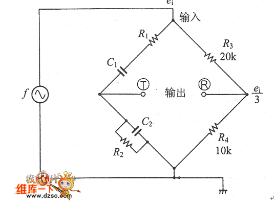 這種電路的平衡條件是端子①和⑩之間流過的電流為0。在很多的例子中,由于R1=R2、C1=C2,從