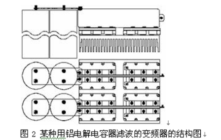 從上述兩電容器的參數可以明顯看到:與鋁電解電容器相比,ESR、最大有效值電流、寄生電感、浪涌電壓/額定電壓的比值、浪涌電流均明顯優于鋁電解電容器,還有一個重要因素就是薄膜電容器的壽命是鋁電解電容器所無法相比的。如某種用鋁電解電容器濾波的變頻器的結構如圖2。