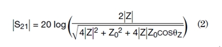 然后,利用ABCD參數和散射(S)參數之間的關系,可以得到插入損耗S21的幅度為: